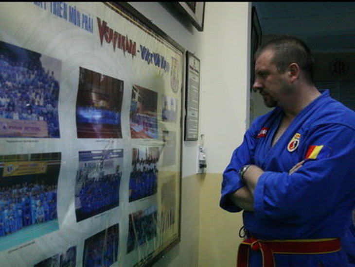 TTCT - Kể từ khi Liên đoàn Vovinam thế giới (WvVF) ra đời tháng 10 năm ngoái, Vovinam đã có thêm những bước tiến dài trên con đường quảng bá tinh hoa võ Việt. Và như những câu chuyện không bao giờ kết thúc, tại Giải Vovinam thế giới lần 1-2009 vừa kết thúc ngày 30-7 tại nhà thi đấu Quân khu 7, lại có thêm những con người mới “rung động” với võ Việt... Phóng to Lisa luyện ngón tự vệ với anh trai - Ảnh: N.K.TTCT - Kể từ khi Liên đoàn Vovinam thế giới (WvVF) ra đời tháng 10 năm ngoái, Vovinam đã có thêm những bước tiến dài trên con đường quảng bá tinh hoa võ Việt. Và như những câu chuyện không bao giờ kết thúc, tại Giải Vovinam thế giới lần 1-2009 vừa kết thúc ngày 30-7 tại nhà thi đấu Quân khu 7, lại có thêm những con người mới “rung động” với võ Việt... Võ sư Florin Macovei: giấc mơ Vovinam tại châu Âu Chúng tôi gặp lại Florin khi anh đang trầm ngâm đứng một mình xem những hình ảnh về Vovinam ở tổ đường Vovinam (Q.10, TP.HCM). Florin đang cùng các đoàn nước ngoài đến thăm hỏi chưởng môn Lê Sáng trước khi bước vào giải vô địch thế giới (VĐTG). Những hình ảnh Florin xem không mới nhưng với võ sư 42 tuổi người Romania này thì nó luôn đem đến cho anh cảm giác thật đặc biệt về cội nguồn môn võ mà anh theo học trong mười năm qua. Florin cho biết do nền kinh tế Romania gặp nhiều khó khăn trong những năm 1990 nên anh đã không tìm được một việc làm thích hợp với tấm bằng kỹ sư của mình. Cuộc sống đưa đẩy anh nhận một chân bảo vệ. Nhờ đó, Florin tìm đến võ thuật để rèn luyện sức khỏe và phục vụ công việc. Sau khi tìm hiểu qua võ sư người Pháp Patrick Levet, một trong những người đầu tiên đưa Vovinam đến châu Âu, Florin đã biết đến Vovinam. Giờ đây, tuy là một thương gia nhưng Florin cũng không thể dứt nghiệp võ bởi Vovinam đã ngấm vào máu thịt. Florin đã có 16 lần đến VN, bắt đầu từ năm 1999, và mỗi lần đều lưu lại từ một đến vài tháng để học hỏi tinh hoa Vovinam với võ sư Nguyễn Văn Chiếu. Florin nói: “Qua Vovinam, tôi hiểu hơn con người và văn hóa VN. Nhưng nhờ thầy Chiếu mà tôi yêu Voninam. Thầy rất tốt và am tường Vovinam cả về chiêu thức lẫn võ đức. Thầy đã cho tôi ở nhà, không tính học phí và luôn nhiệt tâm truyền dạy các ngón nghề”. Nhờ vậy mà nghiệp võ của Florin Macovei thăng tiến liên tục. Trong các giải đấu quốc tế từ năm 1999-2002, anh đoạt rất nhiều danh hiệu, đủ màu từ vàng, bạc, đồng đến nỗi không nhớ nổi. Nhưng võ sư 42 tuổi này sẽ không bao giờ quên chiếc HCĐ đoạt được tại giải VĐTG môn Vovinam lần đầu tiên được tổ chức năm 2003 (khi WVVF chưa ra đời). Năm 2004, Florin chuyển sang công tác huấn luyện và đào tạo nên cậu học trò Ciobotaru Geluta, người từng hai lần đoạt HCV tại giải VĐTG liên tiếp 2005-2007. Khi ai hỏi thành tích của mình, Macovei đều dí dỏm ghép luôn thành tích của Geluta bởi mình có công đào tạo. Tuy nhiên, đáng tiếc là tại giải VĐTG đầu tiên do WVVF tổ chức lần này Geluta không thể có mặt vì chấn thương. Ngoài ra, Macovei cũng tự hào khoe vợ mình cũng yêu Vovinam và là võ sư hoàng đai nhị đẳng. Cũng trong thời gian từ năm 2004, Florin mày mò gầy dựng Vovinam tại Romania. Những nỗ lực của anh cuối cùng cũng được đền đáp khi Vovinam chính thức được xem là thành viên của Liên đoàn Võ thuật Romania (FRAMC), ngang hàng những môn võ nổi tiếng như karate, kick boxing... do chính Florin làm giám đốc kỹ thuật. Điều này khiến anh được tín nhiệm bầu làm phó chủ tịch WVVF và FRAMC. Chính võ sư Nguyễn Văn Chiếu hay các HLV Vovinam VN khi nhắc đến tên Florin đều không giấu tự hào: “Florin giỏi lắm. Châu Âu giờ phải nhờ đến anh nhiều”. Với những nỗ lực của Florin, hiện nay tại Romania có mười CLB dạy Vovinam với hàng trăm võ sinh. Từ năm 2004 đến nay, Romania đều tổ chức giải VĐQG Romania đều đặn và sắp vươn lên ngang hàng các “đại gia” Vovinam ở châu Âu như Ý, Pháp... Nhưng Florin vẫn chưa bằng lòng với hiện tại, anh nói: “Giải VĐTG năm nay là khởi đầu đưa Vovinam lên một tầm cao mới, mạnh mẽ hơn. Những nỗ lực đầu tiên đã thành công, giờ đây tôi đang nỗ lực để thành lập Liên đoàn Vovinam châu Âu góp phần tiếp tục quảng bả, phát dương quang đại Vovinam ra thế giới”. Đỗ Tường Quyên: “Người VN phải học võ VN” Phóng to Tường Quyên chăm chú theo dõi những màn biểu diễn để học hỏi thêm - Ảnh: N.K.Đỗ Tường Quyên chỉ là cô gái Việt kiều nhỏ nhắn lọt thỏm trong đoàn Vovinam Pháp toàn những anh chàng to cao, nhưng trông cô thật lanh lẹ và nói tiếng Việt rất sõi. Cô gái 21 tuổi sinh tại Pháp này gắn bó với Vovinam từ năm 7 tuổi và ngày càng tỏ ra mê mẩn môn võ dân tộc dù trước đó Vovinam không phải là sự lựa chọn của cô. 7 tuổi, Tường Quyên muốn học khiêu vũ. Mẹ cô không thích và bắt cô con gái nhỏ của mình theo người anh bà con đi tập Vovinam cho khỏe người. Quyên dĩ nhiên kh