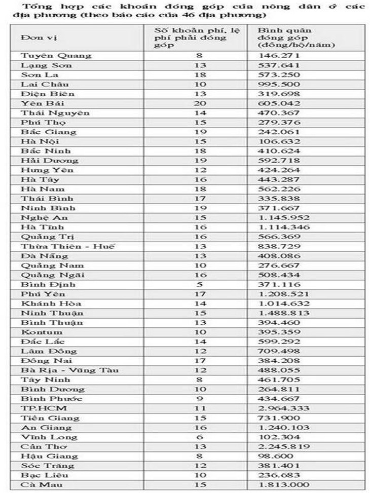 TTCT - Loại trừ các khoản phí, lệ phí phải nộp theo qui định của Nhà nước khi giải quyết các việc hành chính, mỗi hộ dân còn phải đóng góp hằng năm từ 2,5 - 5,2% thu nhập bình quân của mình cho các loại phí khác, điều này gây khó khăn cho họ trong đầu tư sản xuất, đi lại, học hành, y tế... Phóng to - Việc đóng góp phí, lệ phí là một việc rất bình thường bởi người dân phải có trách nhiệm đóng góp vào ngân sách nhà nước thông qua việc sử dụng các dịch vụ hoặc một số công việc liên quan đến quản lý nhà nước. Nguồn thu đó góp phần đầu tư vào các công trình phục vụ chính người dân. Tuy nhiên, vẫn còn những tồn tại trong việc thực hiện pháp lệnh phí và lệ phí. Trong 340 loại phí, lệ phí Chính phủ chỉ đạo các địa phương phải bãi bỏ thì một số địa phương vẫn chưa có báo cáo cụ thể về việc bãi bỏ. Theo đánh giá của Ủy ban Tài chính - ngân sách của Quốc hội, Chính phủ vẫn chưa bao quát hết những khoản phát sinh phí, lệ phí và mức thu chưa phù hợp với cơ chế thị trường, chậm được bổ sung. Một số qui định còn thiếu nhất quán, bất cập. Công tác kiểm tra, kiểm soát thực hiện pháp lệnh phí và lệ phí còn thiếu chặt chẽ. Phóng to Quá nhiều khoản đóng góp đang trở thành gánh nặng đối với người dân - Các khoản phí, lệ phí đề nghị xóa bỏ: đăng ký khai sinh; bản sao giấy khai sinh; đăng ký kết hôn; đăng ký khai tử; chứng thực hồ sơ đi học; chứng thực hồ sơ đi làm; đăng ký hộ khẩu thường trú; xác nhận hộ khẩu; cắt chuyển khẩu; cấp đổi sổ hộ khẩu vì thay đổi địa giới hành chính; xác nhận hộ tịch; cấp giấy chứng minh nhân dân; đăng ký tạm trú, tạm vắng. Đây được cho là những công việc liên quan đến mọi công dân, thuộc lĩnh vực dịch vụ công mà các cơ quan hành chính nhà nước có trách nhiệm lo cho dân, không nên coi là một loại phí người dân phải đóng góp. - Các khoản thu thường niên và đột xuất đề nghị miễn: quĩ an ninh - quốc phòng; quĩ phòng chống lụt bão; quĩ kinh tế mới (ở một số địa phương); thủy lợi phí; khoản đóng góp xây dựng cơ sở hạ tầng điện cao thế.* Thưa bà, thực tế hiện nay có tình trạng một số khoản phí, lệ phí không được qui định trong pháp lệnh nhưng lại được qui định ở một số văn bản chuyên ngành. Làm sao để ngăn chặn tình trạng này nhằm giảm bớt gánh nặng cho người dân? - Vấn đề đó phải được tăng cường kiểm soát. Bên cạnh đó, người dân cũng nên lên tiếng phản ảnh nếu thấy các khoản phí, lệ phí bất hợp lý. Tôi thấy việc kiểm soát của Chính phủ đối với việc thực hiện phí, lệ phí còn hạn chế. Bây giờ Chính phủ có website để quan hệ với nhân dân nên người dân có điều kiện phản ảnh tốt hơn. Phải có sự đồng bộ như vậy mới kiểm soát được vấn đề. * Bà có cho rằng hiện nay cùng với các khoản phí, lệ phí thì cũng có quá nhiều các khoản đóng góp khác nên trở thành gánh nặng đối với nhiều hộ dân? - Tình trạng người dân phải đóng góp nhiều khoản đã được phản ảnh và Chính phủ đã giao Bộ Nông nghiệp và phát triển nông thôn rà soát. Người dân sống ở nông thôn có mức thu nhập thấp mà phải đóng góp quá nhiều thì cần phải xem xem khoản phí, lệ phí nào hợp lý, loại nào không hợp lý. Bên cạnh đó, đáng quan tâm là khoản đóng góp tự nguyện của dân. Cá nhân tôi cho rằng nhiều khoản thu quá thì bắt buộc phải rà soát lại để làm sao giảm bớt đi, làm sao cho người dân có điều kiện tổ chức cuộc sống tốt hơn. Quả thật là chính sách huy động người dân tham gia đóng góp các khoản phí, lệ phí còn một số vấn đề cần phải tính toán đến đời sống và mức thu nhập của người dân ở các vùng miền khác nhau sao cho phù hợp. * Thưa bà, một đánh giá đáng chú ý của Ủy ban Tài chính - ngân sách sau khi giám sát là việc không ít khoản phí, lệ phí để lại cho các cơ quan sử dụng chưa được kiểm tra, kiểm soát thường xuyên? - Nếu tất cả những khoản đóng góp đưa vào ngân sách thì nó được thu chi theo một trình tự rất chặt chẽ. Ví dụ Quốc hội phân bổ ngân sách về địa phương và HĐND quyết định việc chi cho những vấn đề cụ thể. Tuy nhiên, đại biểu Quốc hội cũng đã phản ảnh ý kiến với Chính phủ về một số khoản phí, lệ phí chưa được ghi thu, ghi chi kịp thời vào ngân sách khiến người dân băn khoăn, chẳng hạn viện phí, học phí. Ý kiến Quốc hội là phải quản lý vấn đề này chặt chẽ hơn. * Đây có phải là hậu quả của việc chúng ta chưa công khai, minh bạch các khoản phí, lệ phí? - Nhà nước không thể hoàn toàn lo nổi tất cả các vấn đề do ngân sách hạn hẹp. Vì vậy người dân phải tham gia đóng góp cùng với Nhà nước. Tuy nhiên, người dân tham gia mức độ nào, Nhà nước tham gia mức độ nào thì phải công khai, minh bạch. Chỗ này chúng ta chưa rõ ràng nên vẫn còn nhập nhằng. Hằng năm kinh phí dành cho 