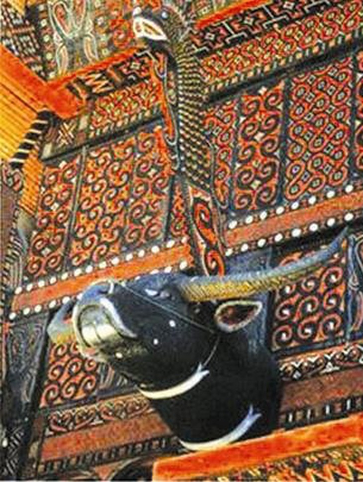TTCT - Đi giữa màu xanh bạt ngàn của vùng thung lũng nắng và gió trên đảo Sulawesi chợt bắt gặp những mái nhà dáng cong hình thuyền đầy ấn tượng, ấy là lúc ta đang hòa mình vào không gian văn hóa Toraja kỳ bí. Đảo Sulawesi, Indonesia: Phóng to Người Toraja và trang phục truyền thốngTTCT - Đi giữa màu xanh bạt ngàn của vùng thung lũng nắng và gió trên đảo Sulawesi chợt bắt gặp những mái nhà dáng cong hình thuyền đầy ấn tượng, ấy là lúc ta đang hòa mình vào không gian văn hóa Toraja kỳ bí. Với bất kỳ ai lần đầu tiên tiếp xúc, từng căn nhà tongkonan xếp thành hàng chạy dài thẳng tắp trông giống như những chiếc ngư thuyền đang neo đậu giữa bến nước trong xanh thẫm màu sơn cước. Toraja là dân tộc bản địa thuộc ngữ hệ Nam Đảo định cư lâu đời tại khu vực phía nam đảo Sulawesi với số dân khoảng 650.000 người, chủ yếu làm các nghề nông, ngư nghiệp và thủ công truyền thống. Họ theo Kitô giáo, một số theo Hồi giáo và các dạng tín ngưỡng bản địa khác. Trong tiếng Bugis địa phương, “toraja” nghĩa là “cư dân vùng núi”, được người Hà Lan chính thức đặt tên vào đầu thế kỷ 20 khi vùng này còn là thuộc địa. Nhắc đến văn hóa Toraja không thể không nhắc đến mẫu kiến trúc nhà sàn tongkonan độc đáo. Phóng to Những mái nhà tongkonan trông giống những chiếc thuyền lướt sóng đại dương Nhà tongkonan được xây trên trục những thân cột to cao, rắn chắc. Mái nhà lợp bằng lá, kim loại hay ngói nung, được thiết kế dáng cong hình con thuyền cao vút, kiêu hãnh. Hai mũi thuyền ở hai đầu được kéo ra và dựng cong lên một góc 45 độ, khiến tổng thể căn nhà như một chiếc thuyền bồng bềnh giữa màu xanh cây lá xung quanh. Mặt trước nhà tongkonan thường quay về hướng bắc (hướng tổ tiên). Tường và sàn nhà thường làm bằng gỗ, được trang trí với nhiều gam màu đặc trưng (màu đen = bóng tối, chết chóc; màu trắng = thuần khiết; màu đỏ = màu máu, màu sự sống; vàng = màu mặt trời, quyền lực). Nhiều môtip trang trí được cho là mang phong cách văn hóa Đông Sơn truyền bá từ đất liền ra. Theo chiều thẳng đứng, tổng thể tongkonan chia làm ba phần: trên cùng là nơi linh thiêng dành cho tổ tiên và cất giữ các báu vật gia truyền; ở giữa là không gian sống của con người; và bên dưới sàn nhà là nơi cột gia súc. Theo quan niệm Toraja, ba tầng không gian trong mỗi tongkonan tượng trưng cho ba tầng vũ trụ thiên giới - dương gian - địa ngục; cả căn nhà tongkonan là một vũ trụ thu nhỏ, là nơi gặp gỡ của quá khứ - hiện tại - tương lai và là nơi hội tụ của khí từ tứ phương đông - tây - nam - bắc. Phóng to Trang trí trong nhà (trâu: biểu trưng của thịnh vượng)Theo truyền thuyết Toraja, thuở hồng hoang khi loài người còn ở trên thiên giới, ngôi nhà tongkonan đầu tiên được đấng sáng thế Puang Matua xây dựng trên bốn chiếc cột lớn lợp mái bằng một thứ vải thiêng, khi tổ tiên Toraja xuống trần đã mang theo mẫu kiến trúc ấy. Và cứ thế, các thế hệ Toraja vẫn giữ phong cách nguyên thủy, coi đó là biểu tượng thiêng liêng mà đấng sáng thế đã ban tặng cho riêng họ. Theo từ nguyên, tongkonan bắt nguồn từ tongkon, trong tiếng bản địa có nghĩa là ngồi, ngụ ý tongkonan là nơi các thành viên gia đình ngồi lại với nhau để gìn giữ truyền thống. Vì thế, tongkonan có vị trí hết sức đặc biệt trong xã hội Toraja. Từng làng bản Toraja đều có tongkonan trung tâm (như đình, nhà rông ở Việt Nam) do người dân hợp sức xây dựng làm trung tâm sinh hoạt chính trị - xã hội - tôn giáo cộng đồng. Theo qui định cũ, chỉ có các chức sắc mới có quyền dựng tongkonan riêng, song qui mô thường nhỏ hơn tongkonan trung tâm. Hiện nay việc xây dựng tongkonan hoàn toàn phụ thuộc vào khả năng tài chính của mỗi gia đình do phải mất nhiều công sức và tiền của. Phóng to Hang thờ trong phong tục Toraja. Tang lễ người Toraja có đông người tham dự, thường kéo dài nhiều ngày liền. Mộ táng truyền thống dạng hình thuyền, ngụ ý chở linh hồn người chết về vùng đất tổCó ba loại nhà tongkonan: tongkonan layuk dành cho chức sắc hay các vị trưởng tộc chịu trách nhiệm cúng tế cho cả dòng tộc; tongkonan pekamberan dành cho chức dịch và những gia đình khá giả; và tongkonan batu dành cho giới bình dân. Ngày nay, các ngôi nhà tongkonan mới được xây dựng bằng những nguyên vật liệu hiện đại hơn, song cốt cách truyền thống vẫn là điều thiêng liêng mà người Toraja muốn dành tặng cho con cháu mai sau. Giữa núi rừng hùng vĩ người Toraja lại xây nhà hình thuyền, phải chăng đó là dấu ấn sinh động còn sót lại của lục địa Đông Nam Á cổ xưa với nền văn minh trồng trọt huy hoàng đã chìm đắm giữa lòng đại dương mà không ít các học giả phương Tây (như Stephen Oppenheimer) từng đề cập? Linh kiếm Kris trong văn hóa Đông Nam Á hải đảo Phóng to Quốc vương Malaysia Mizan Zainal Abindin với thanh Kris dắt bên hôngKris hay Keris trong tiếng Java cổ là tên gọi 