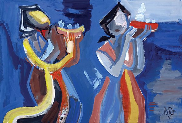 TTCT - Bột màu báo cũ đã từng là chất liệu phổ biến, quen thuộc, đã trở thành biểu tượng của một thời, nào xa xôi gì, một chất liệu ít tiền, dễ vẽ, ai cũng vẽ được. Mời trầu - Đỗ Dũng Những họa sĩ 7X, 6X về trước, người nào mà chả từng gắn bó với bột màu báo cũ. Với thế hệ này, bột màu báo cũ là bạn bè. Ở được cùng nhau, chơi được với nhau, coi nhau là bạn, nghĩa là hai bên phải hiểu tâm tính của nhau, phải thuộc nhau, nương tựa được vào nhau, người này phải theo được người kia. Dễ mà khó, khó mà dễ, nhất là bột màu báo cũ - một người bạn quá đỗi giản dị thì lại càng khó. Chắc chỉ do duyên mà gắn bó được cùng nhau chăng? Cả mấy thế hệ họa sĩ đã có duyên cùng bột màu báo cũ. Từ thời các họa sĩ của Trường mỹ thuật Đông Dương đến các họa sĩ khóa kháng chiến, thế hệ họa sĩ thời chiến tranh, cho đến thời hậu chiến, thời bao cấp... Sen mùa hạ - Trần Gia Tùng Ban đầu thì bột màu vẫn chỉ được coi là chất liệu để làm bài tập, ký họa hoặc làm phác thảo trước khi vẽ thành sơn dầu. Đương nhiên bột màu được vẽ trên các loại giấy chuyên dụng, nhưng đến thời chiến tranh, họa phẩm khan hiếm thì các họa sĩ buộc phải vẽ bột màu trên giấy báo (chưa in). Cho đến khi ngay cả giấy báo chưa in cũng không có thì giấy báo cũ, báo đã đọc xong, bán cân mới được lên ngôi. Khỏa thân - Phạm Trần Quân Cực cùng tắc biến, cái khó bó cái khôn. Mọi sự cứ tự nhiên vậy thôi, thế là một chất liệu mới hình thành, bột màu báo cũ không còn đóng vai phụ nữa, nó đã là một chất liệu độc lập, ngang hàng sơn mài, sơn dầu, màu nước. Nghệ thuật bao giờ cũng mang đến cho người ta tự do. Vẽ bằng gì, vẽ bằng chất liệu gì đâu có quan trọng. Một bức tranh nhỏ vẽ bằng bột màu trên tờ báo cũ mà đẹp, ấy cũng là đủ trả lời cho mọi câu hỏi kiểu như: nghệ thuật là gì, xấu đẹp là gì, chất liệu là gì, kích thước lớn bé là gì... Xe đạp đỏ - Tào Linh Mỗi chất liệu có một ngôn ngữ của nó, hay dở của nó, tính nết của nó. Bột màu sống (chưa trộn, nghiền với keo) có cái ẩm ướt, có cái gợn, xốp dễ hòa nhịp với giấy báo, báo cũ đã in với những dòng chữ to nhỏ, những lề, những khoảng trống, những bức ảnh là một cái nền tự nhiên, đã có đậm nhạt, đã có tình cờ để đôi khi lại là gọi ý, gọi hình, gọi màu về. Những chồng đè của màu lên chữ, những ẩn hiện chữ trên hình, những bỏ quên, những sót lại, những “vô tình” để còn chả phân biệt đâu là tranh đâu là báo, đâu là tin đâu là màu. Thế là một sự “vô tình” lại thành “hữu tình”. Nếu không có, không còn tình thì vẽ làm gì, làm nghệ thuật làm gì? Tin và màu ở trong nhau, hòa với nhau làm một, là một. Người đàn bà ngồi - Đặng Tiến Duyên này sẽ mang duyên kia tới. Những trang báo cũ lại trở thành những bức tranh mới. Những hình ảnh, những tin tức, thời sự nóng hổi sau khi sống hết đời sống ngắn ngủi của nó sẽ hóa thân vào một đời sống mới, một đời sống dài hơn, đời sống của cái đẹp, của nghệ thuật. Nghệ thuật là “tin”, hội họa cũng là “tin”, tin của màu, tin của hình, tin màu, tin đẹp. Tags: Vẽ bột màu